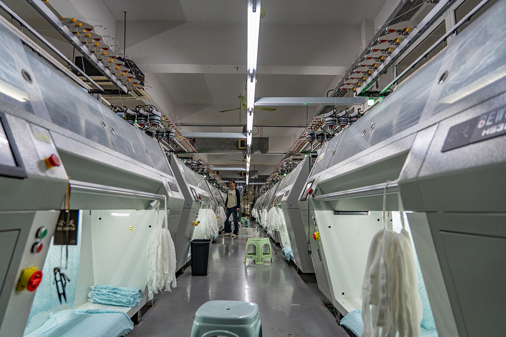 The company's main productsare--men's and women's sweatersof various components, mainly3-14 needles, including wovencombination sweaters. The compa-ny has the entire productionprocess from developing - weaving- washing- finished garments, withan annual output of about 1.5million pieces. And the productsare exported to the United States,Europe and other places.Compa-nies can offer “Whole garment oneline knitting computerized flat knit-ting machine"of products.